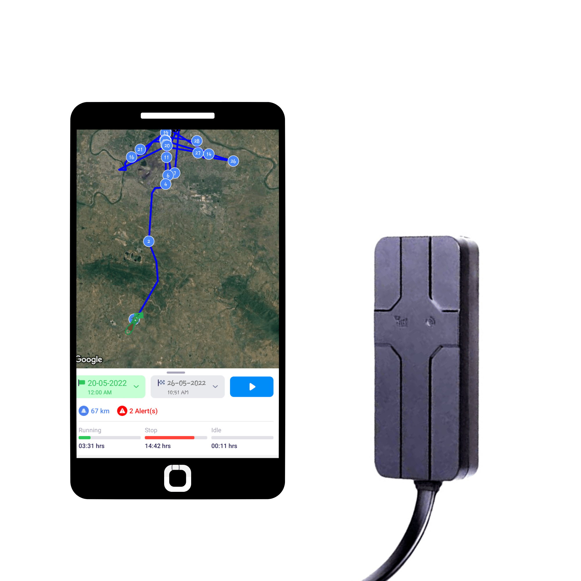 - Real-time GPS Tracking with Live location ~ Engine On/Off or Engine Cut-off ~ Parking Mode / Anti-theft alarm ~ Various Alerts & Notifications ~ 3 month Playback & History ~ Daily stats ~ Contact vehicle driver via app ~ Geo-fence ~ Graphical report ~ Share Live location ~ Update settings in app ~ Multiple vehicles in 1 map ~ Easy & quick Installation ~ Track in Mobile App or Web