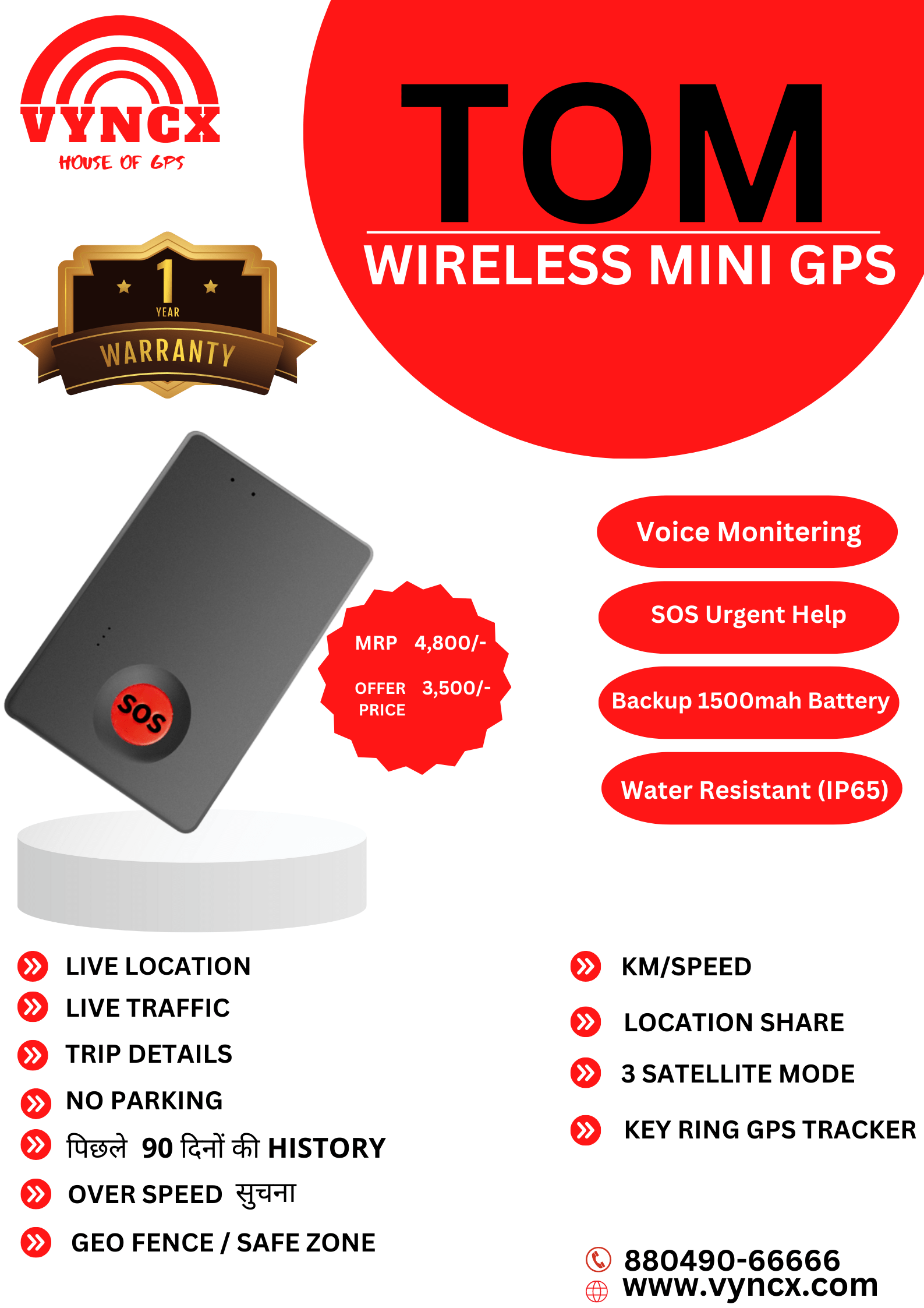 Our GPS device is made up of No.1 U-blox chips, we are using Indian ISRO sattelite, we provide indian based server, means full security of your data. The Vyncx GPS Tracker is the ideal GPS beacon for geolocation of equipment without requiring an external power source. Made in India, Make in India.