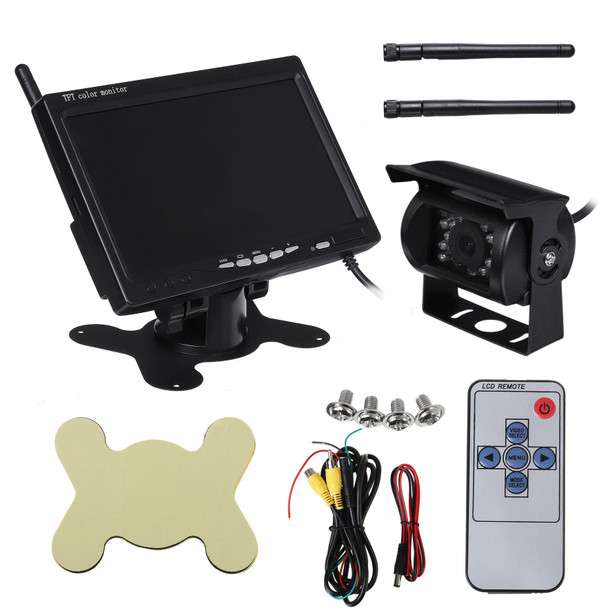 5. An IR waterproof rear view camera with an integrated 2.4 GHz wireless transmitter and 18 individual infrared (IR) LEDs let you see clearly even at night or inclement weather.